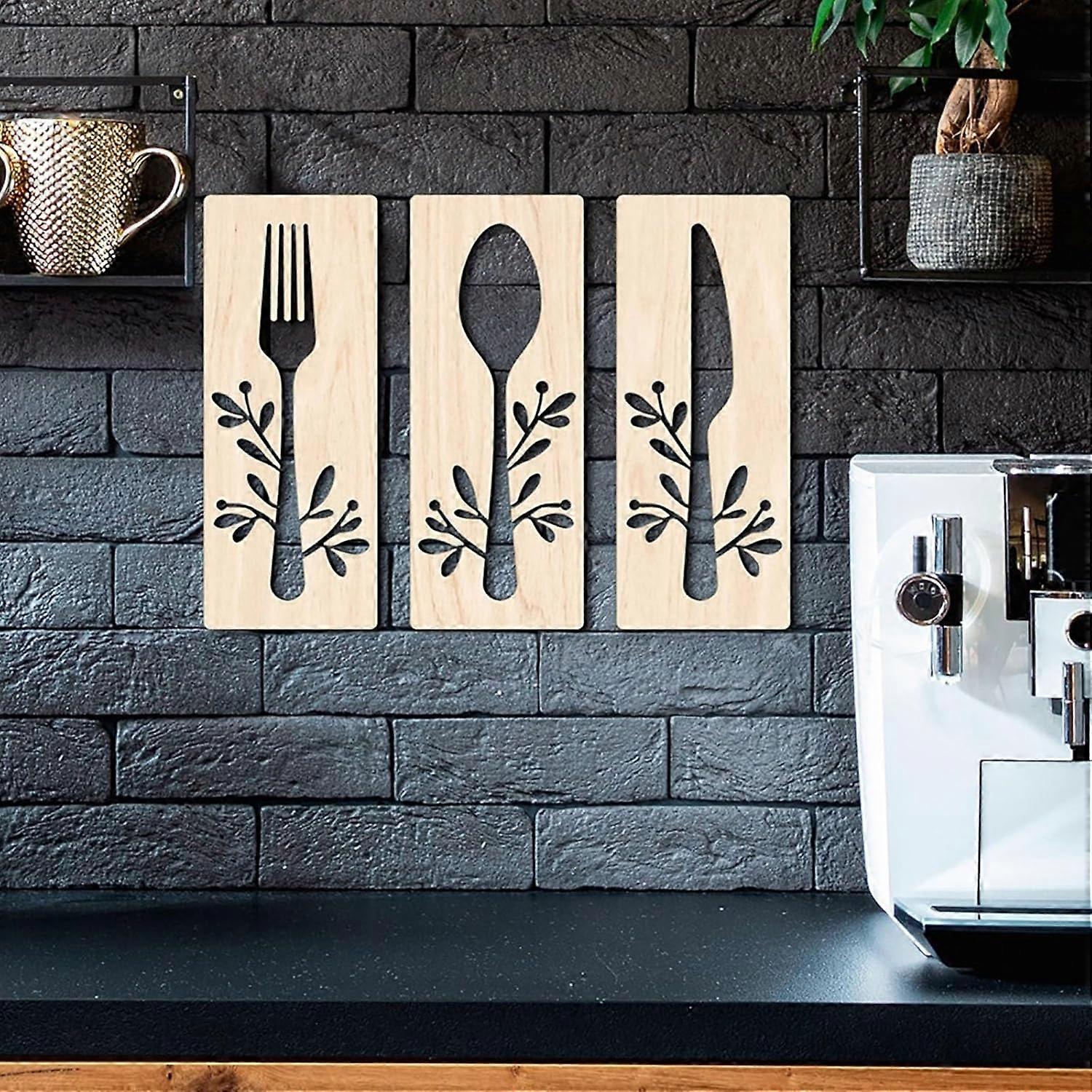 3pcs For Kitchen Wall Sign Wood Letter Sign Fork Spoon Wall Decor Kitchen Wall Art Wood Signs