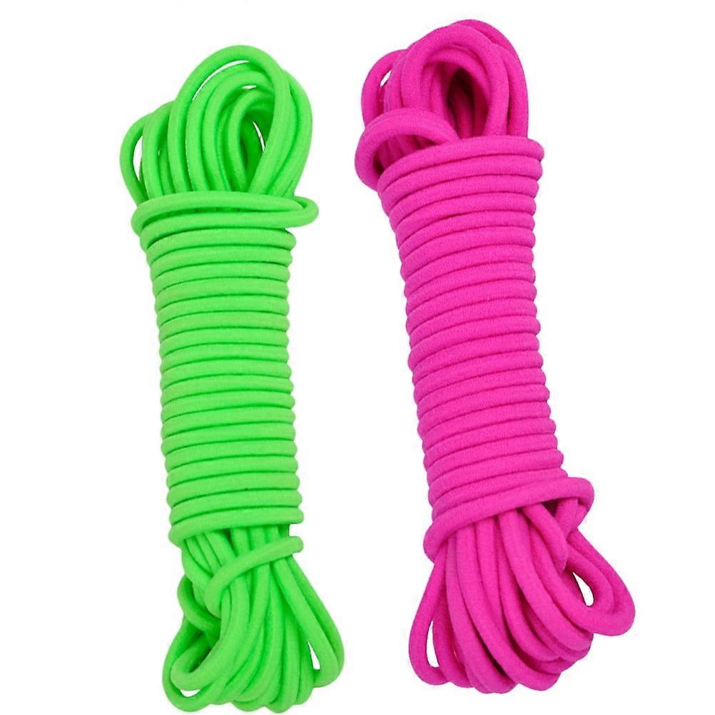 2pcs chinese jump rope Elastic Ropes Sewing Heavy Stretch Skipping Rope for DIY Craft Kids Jumping Ropes Making Supplies ( 5 Meters, Green+ Rosy )