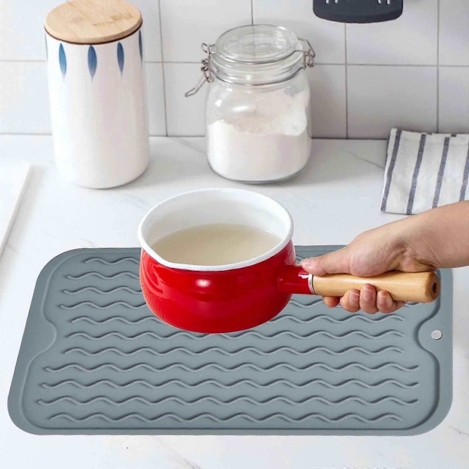 Silicone Dish Drying Mat, Non-Slip Easy Clean Sink Mat Large Heat-resistant Drainer Mat for Kitchen, Sink, Fridge or Drawer Liner (11.6" x 5.9")