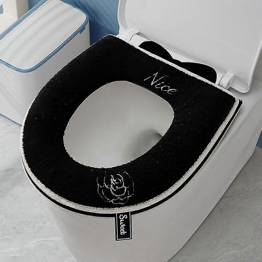 Fashion Zippered Warm Cushioned Toilet Seat Cover Washable Universal Toilet Seat Cushion Reusable Black