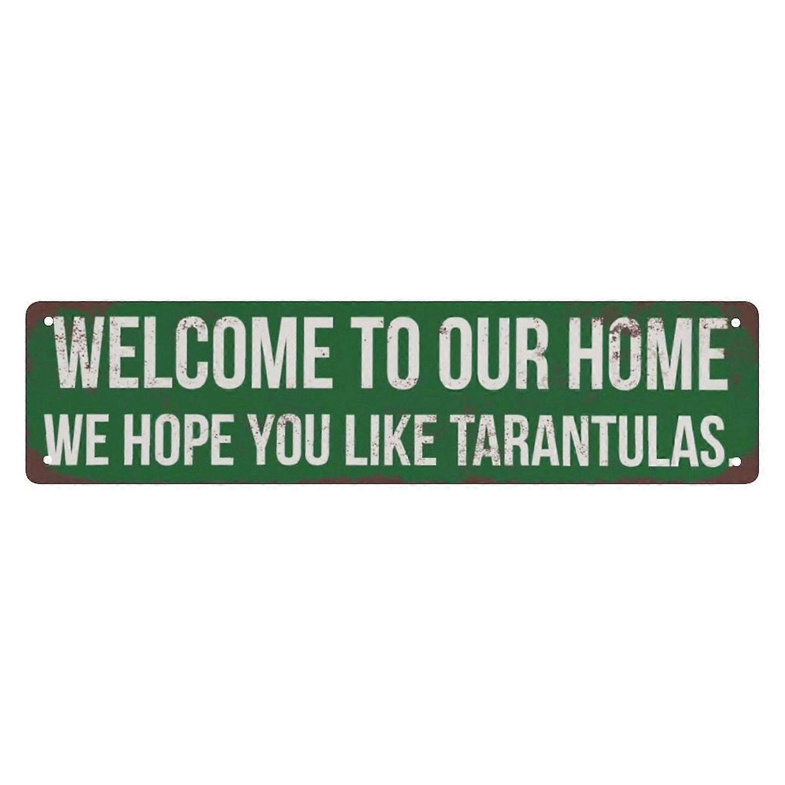 Vintage Metal Tin Sign 4x16 inch - Welcome to Our Home We Hope You Like Tarantulas, Rustic Wall Art Decor for Man Cave Bar Compatible with Unique