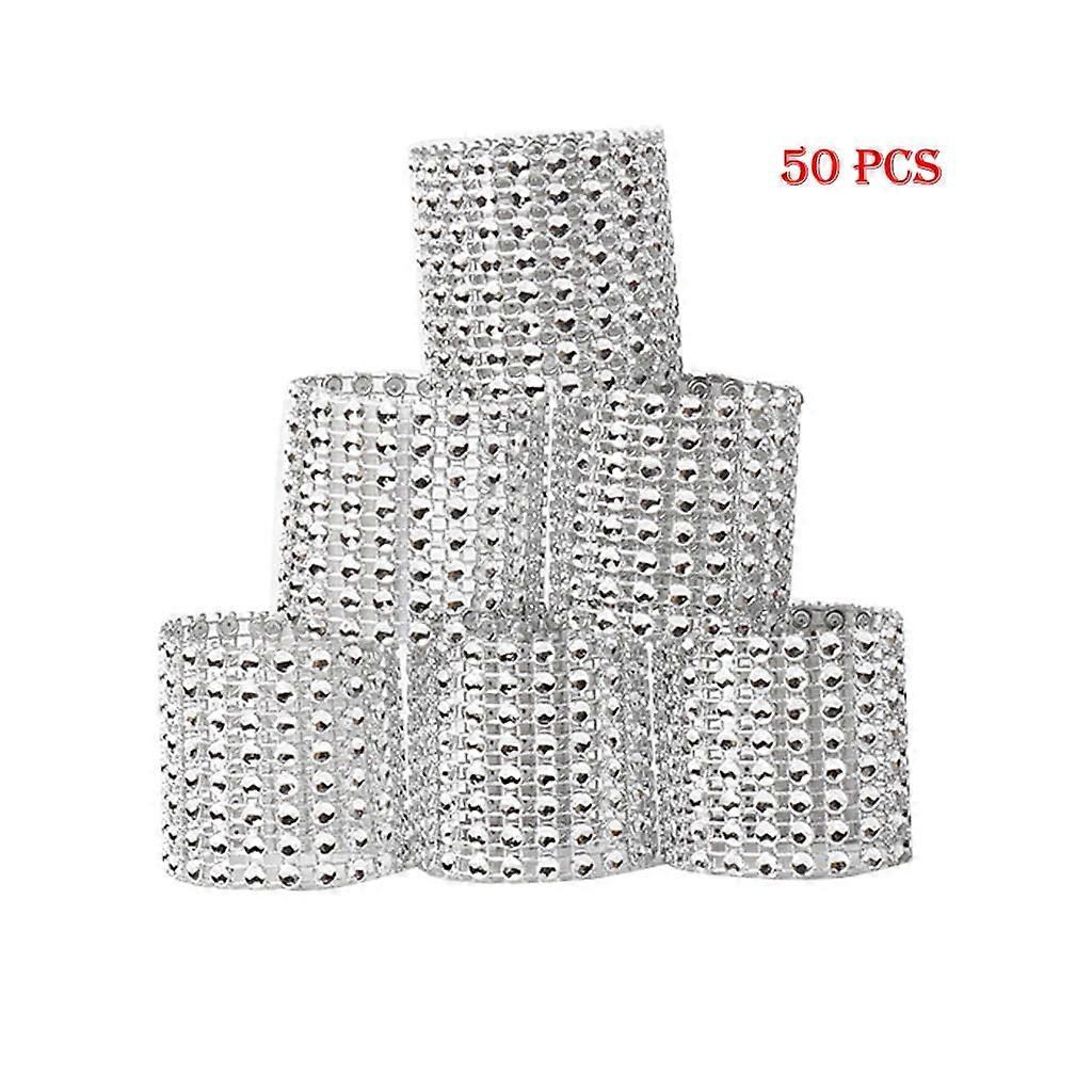 Ruhiku GW 50 Pcs Bling Diamond Rhinestone Mesh Wrap Napkin Wedding Decor Gold