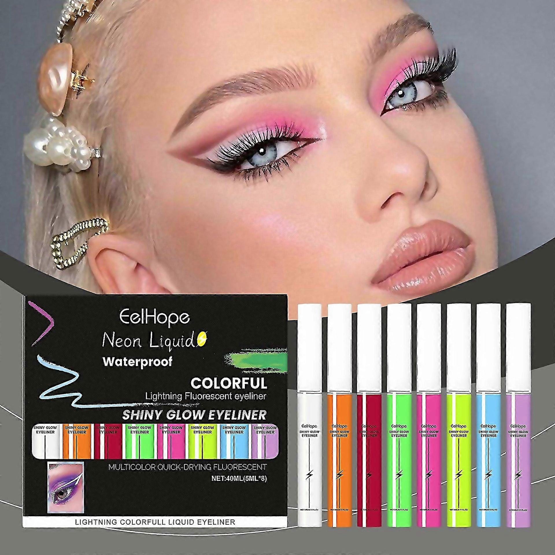 For 8 Colors Uv Neon Liquid Eyeliner Set Matte Colored Eyeliners Pen Waterproof Smudgeproof Pigmente
