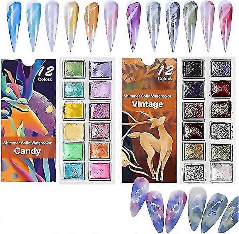 For 24 Colors Nail Pigment Powder Palette Watercolor Nail Paint Powder Nail Art Palette Gel Paint Fo