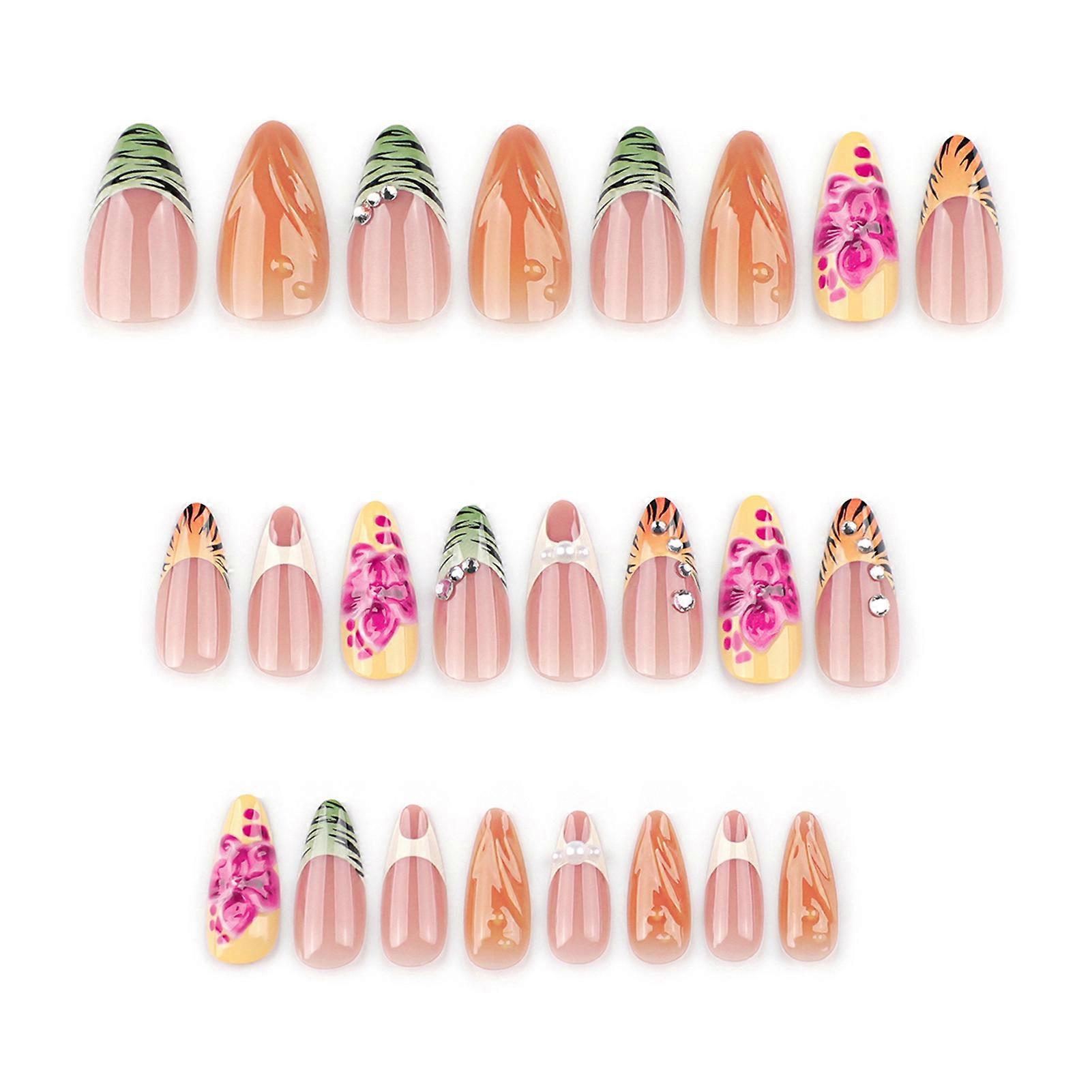 24Pcs Marble Design Fake Nails Short Almond Shape Natural Looking Artificial