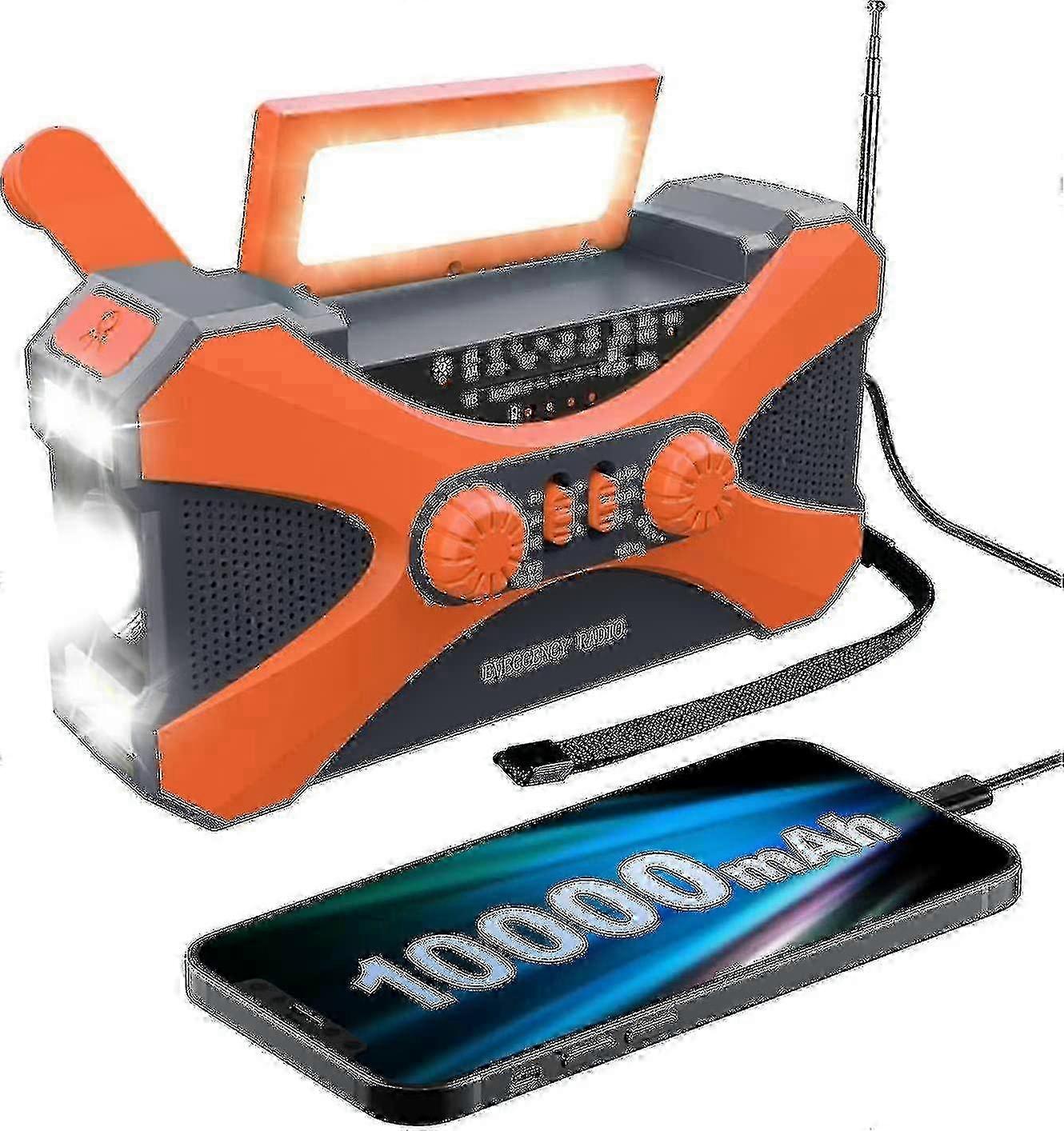 10000mah Emergency Radio Solar Hand Crank Radio Portable Am/fm/noaa Weather Radio With Phone Charger Flashlight jisu