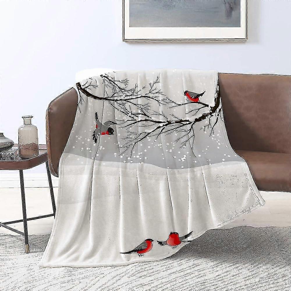 Blanket Flannel Blankets,winter, Winter Snow Season With Happy Colorful Birds Cartoon Style Animals Pattern,throws For Sofa Fluffy Blanket Bed Throw F