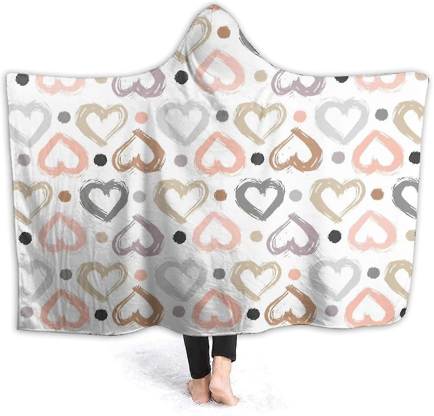 Blanket Hand Drawn Heart Hearts Hooded Blanket Soft Plush Wearable Blanket Warm Hooded Robe Poncho Cape Wrap Bathrobe Sofa Sleeping Throw Flannel Bedd