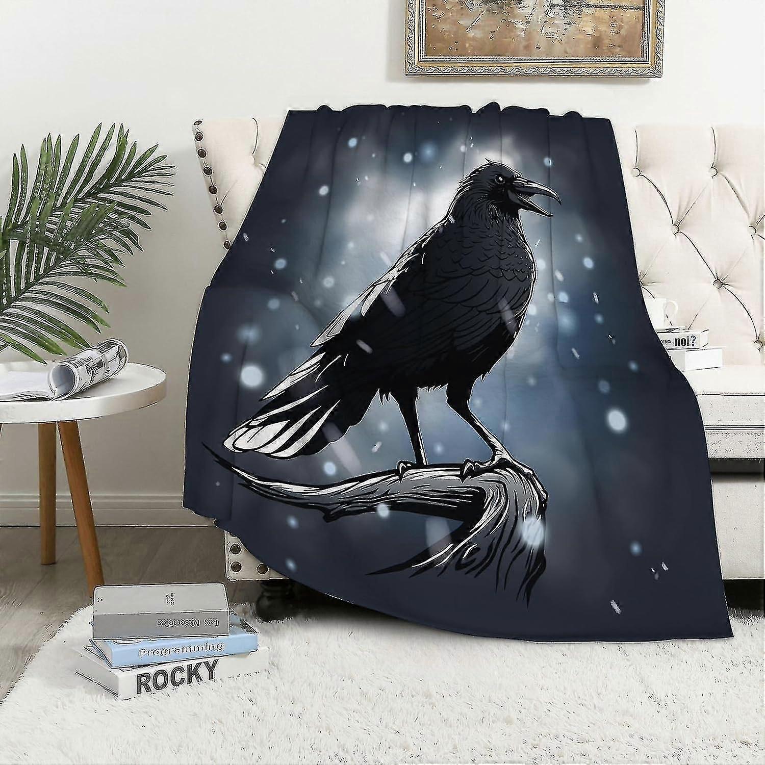 Blanket Warm Soft Raven Illustration Throw Blanket,winter Warm Sofa Bed Throw Bed Picnic Blanket Throw Over Soft Plush Garden Cosy Chair 59x79in