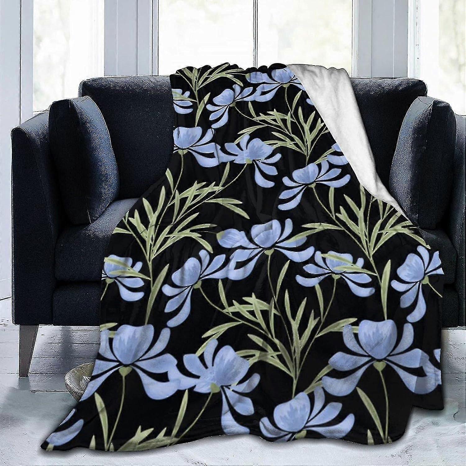 Blanket Plush Flannel Blankets - Light Blue Flowers Black Throw Fleece Blanket - Ultra Softffy Bedding For Living Room Cinema Decoration All Seasons