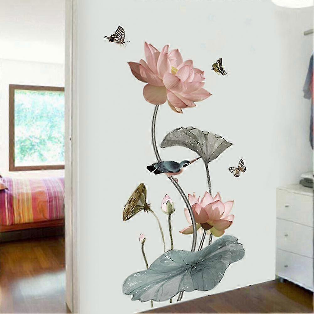 Wall Sticker Self-adhesive Attractive Pvc Flower Pattern Children Room Lotus Decal For Background 25-26s