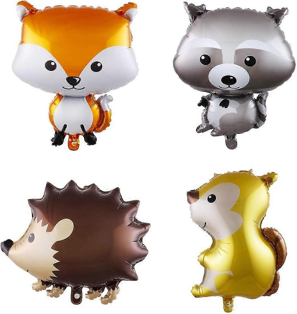 4Pcs Woodland Animal Balloons Fox Squirrel Hedgehog Raccoon Foil Mylar Balloon for Baby Shower Jungle Safari Animals Theme Birthday Party De