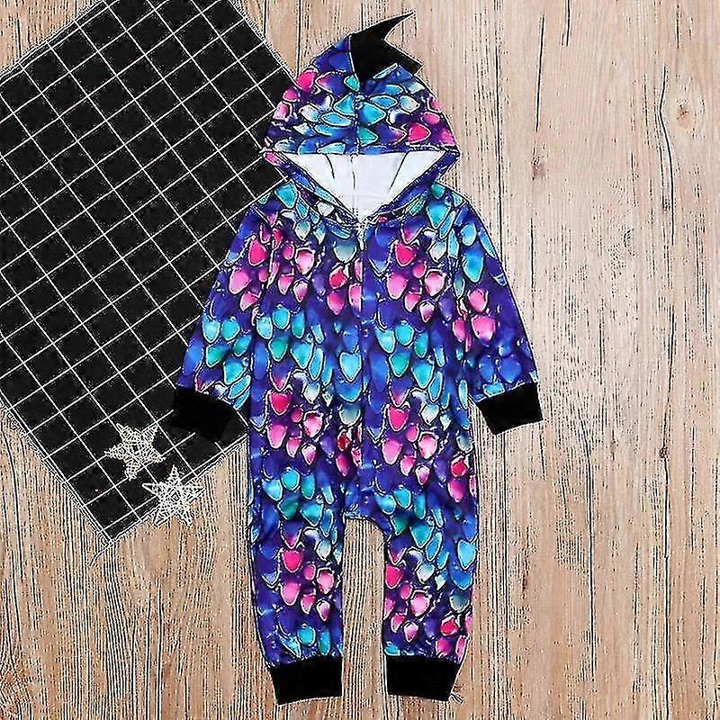 Newborn Baby Boy Girl Dinosaur Colorful Hooded Jumpsuit 25-26s