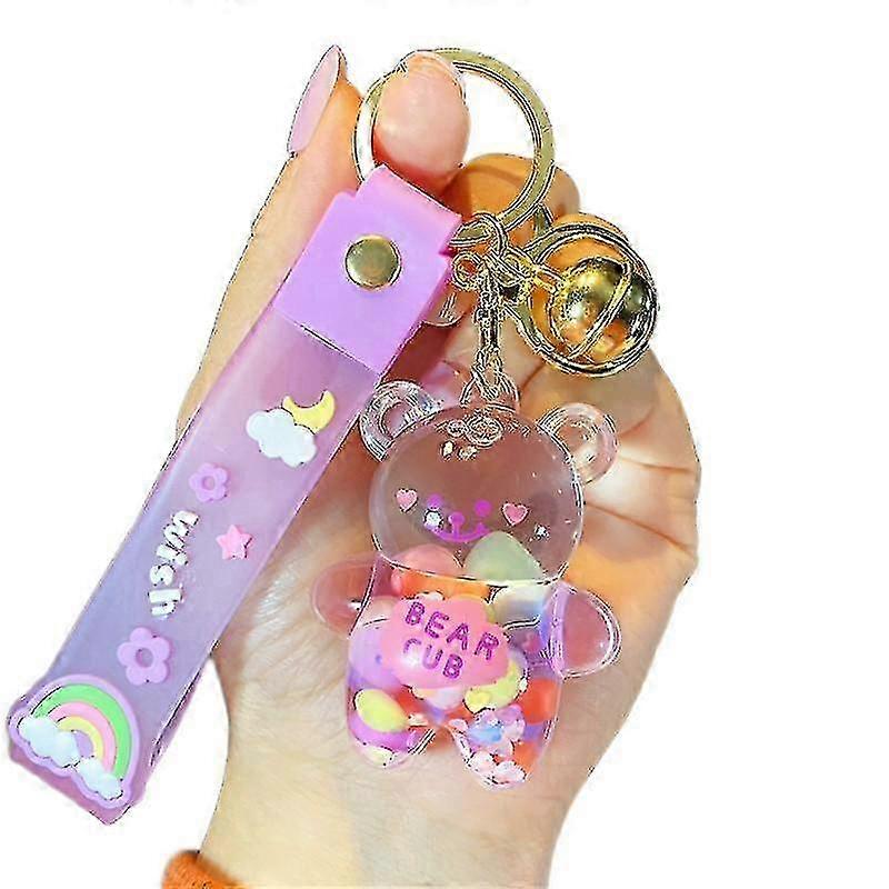 Keychain Bear, Liquid Floating Quicksand Cute Keychain Bag Charm Wristlet Bracelet Key Ring (Color as Shown)