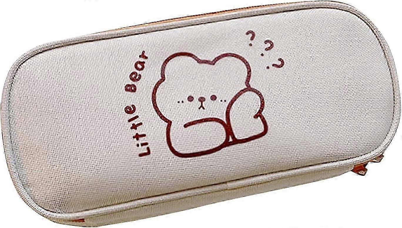 Pencil Case, Big Capacity Kawaii Cartoon Rabbit Bear Print Canvas Stationery Pouch for Students