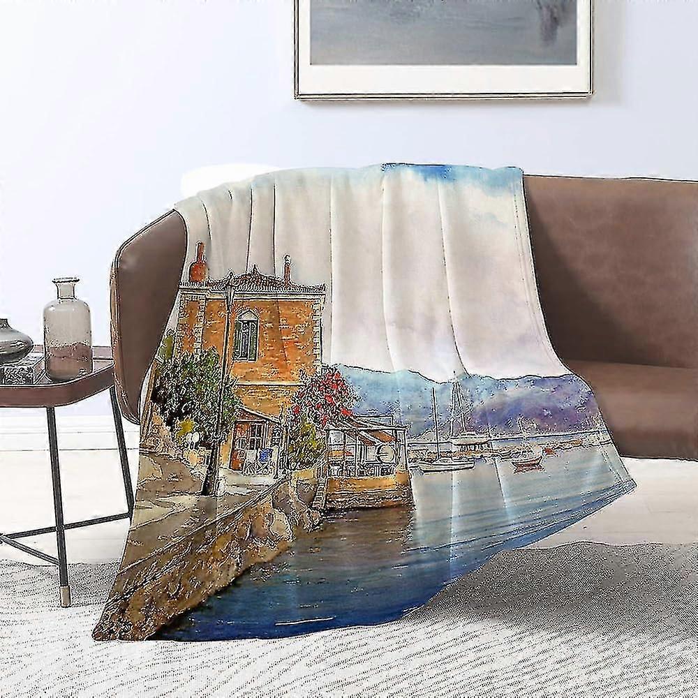 Blanket Flannel Blankets,seaside House,throws For Sofa Fluffy Blanket Bed Throw F Bedroom,couch,bedroom Accessories 72x104in