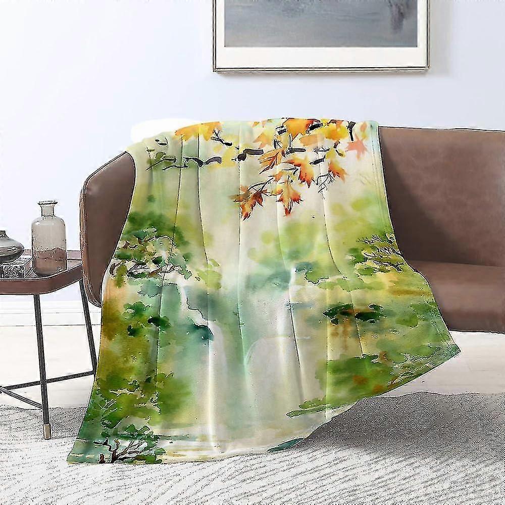 Blanket Flannel Blankets,waterfall, Watercolor Illustration Of Asian Falls And Mountain In Paradise Exotic Print,throws For Sofa Fluffy Blanket Bed Th