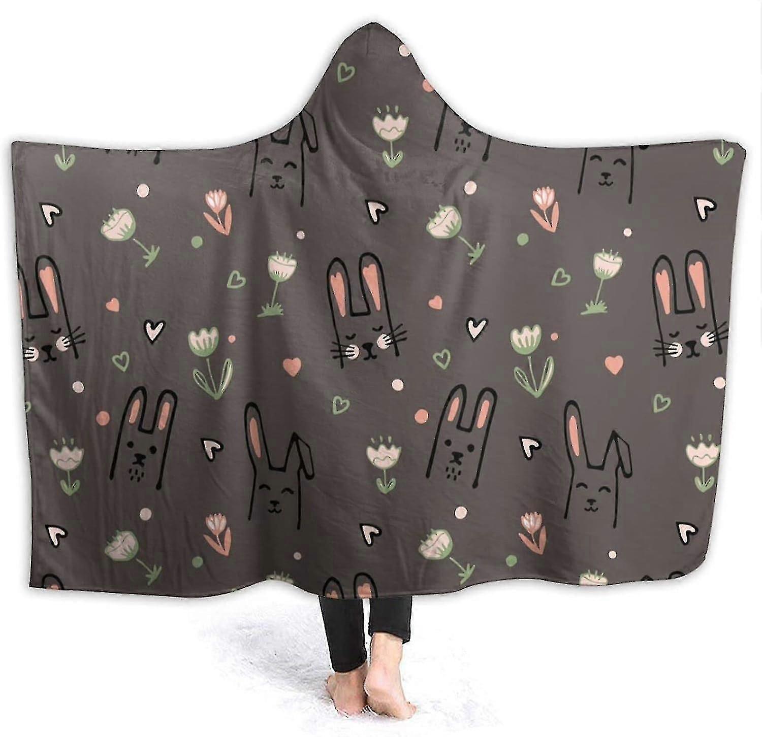 Blanket Cute Rabbit Hooded Blanket Soft Plush Wearable Blanket Warm Hooded Robe Poncho Cape Wrap Bathrobe Sofa Sleeping Throw Flannel Bedding 80"x60"