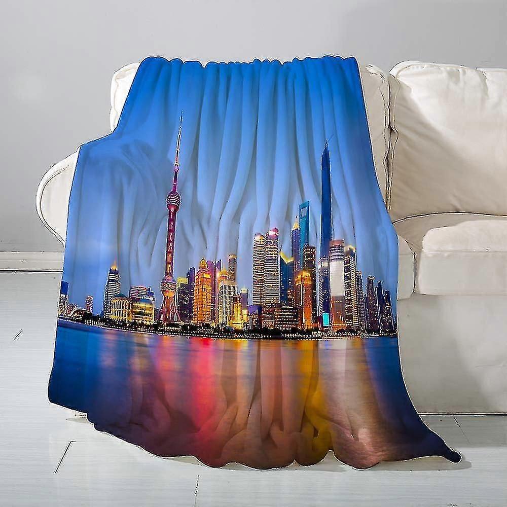 Blanket Flannel Blanket Sofa Throwcity Skyline Of Shanghai China On Huangpu River Dusk Famous Travel Destination Blue - Versatile Blanket Fluffy Soft