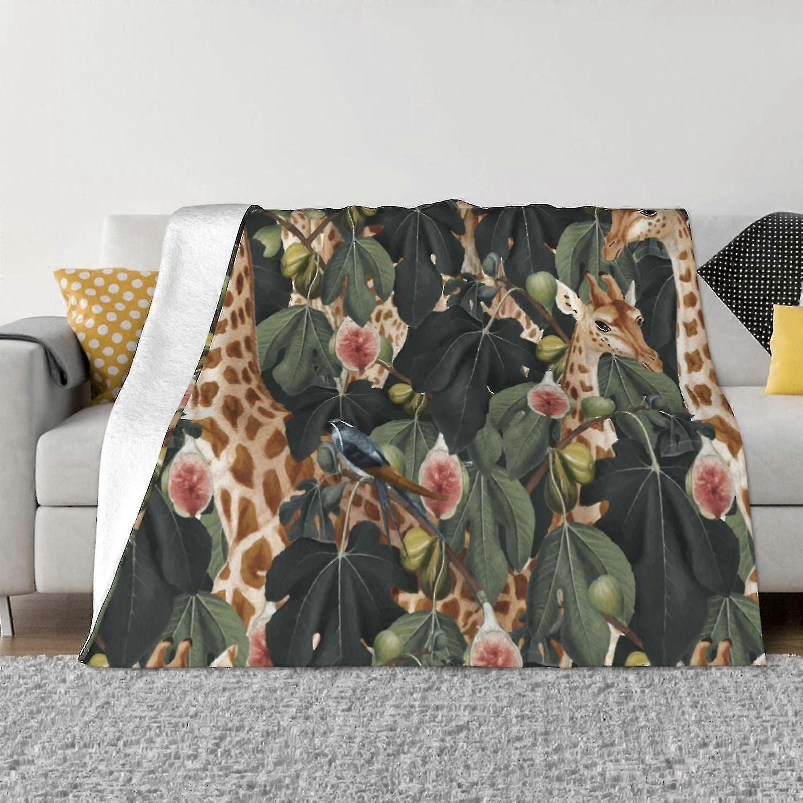 Blanket Flannel Throw Blanket For Couch, Watercolor Plant Giraffe Bed Sofa Decor Blankets For Home Bedroom,-ujki553