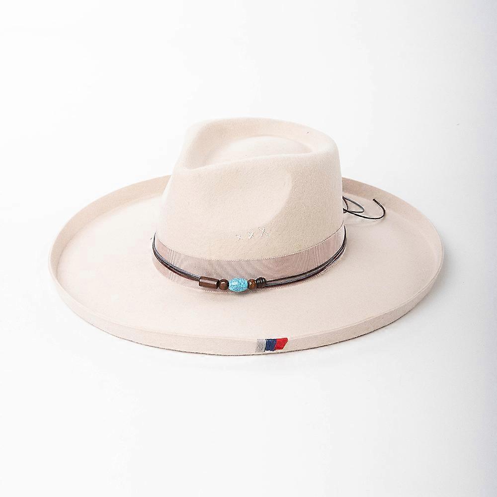 Chic Vintage Wide Brim Wool Fedora Hat Hand-Stitched Beaded Band, Retro Outdoor Warm Jazz Hat for Women & Men