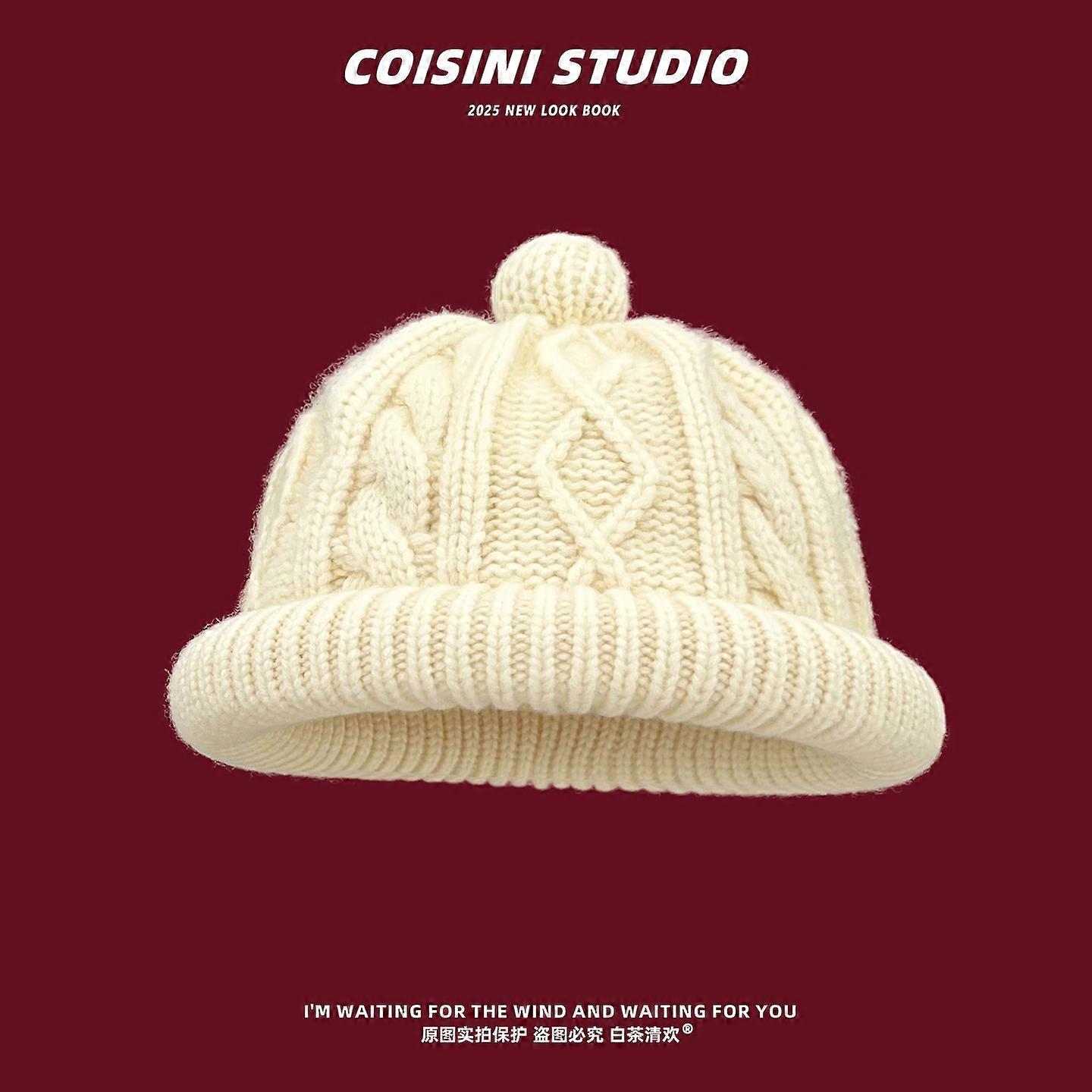 Retro Cute Twisted 100% Wool Beanie Cap Women Autumn Winter Warm High Quality Wool Brimless Knitted Beanie Cap