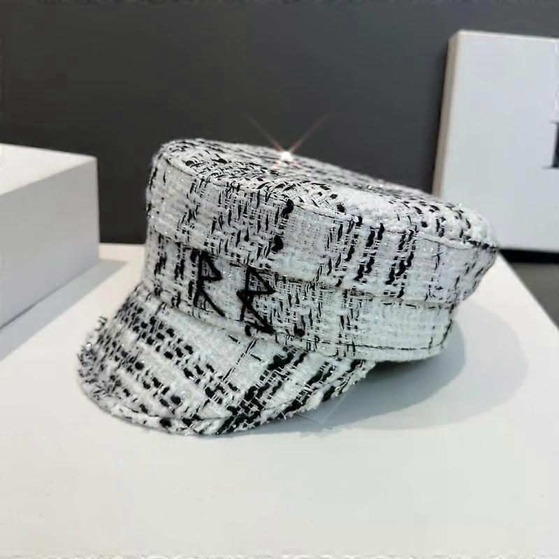 Brand Designer Check Baker Boy Cap Tweed plaid nesboy caps with raw edge