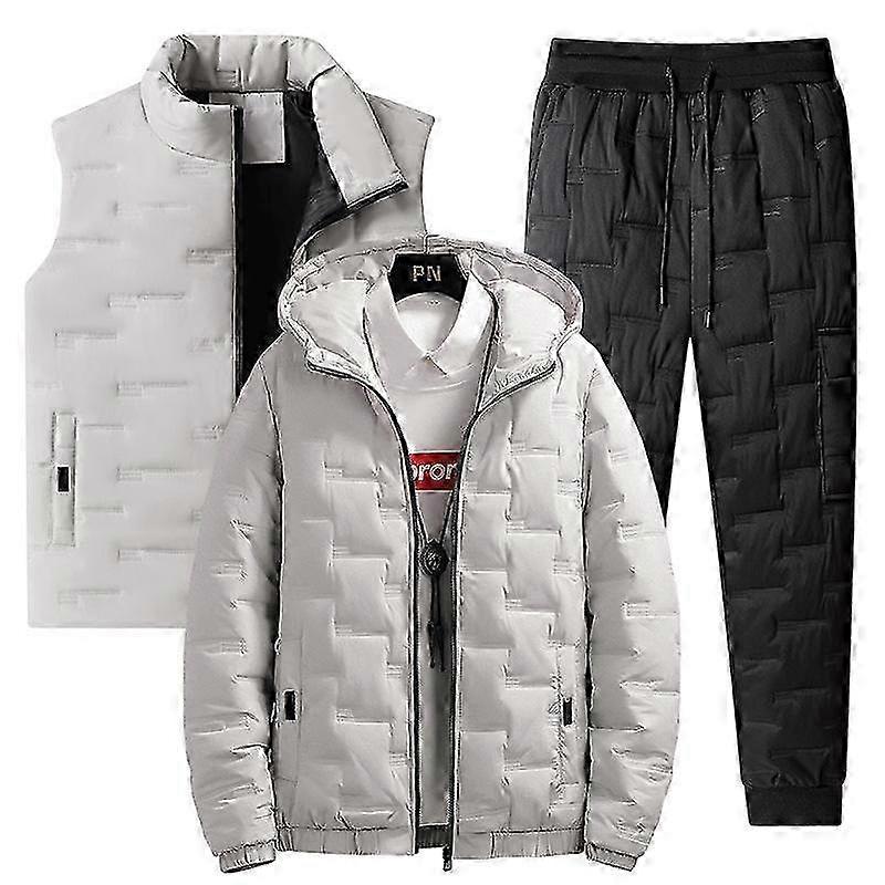 25-26 Autumn and Winter Men's Large Size Down Hooded Cotton Jacket Warm Vest Cotton Pants Three-piece Sets