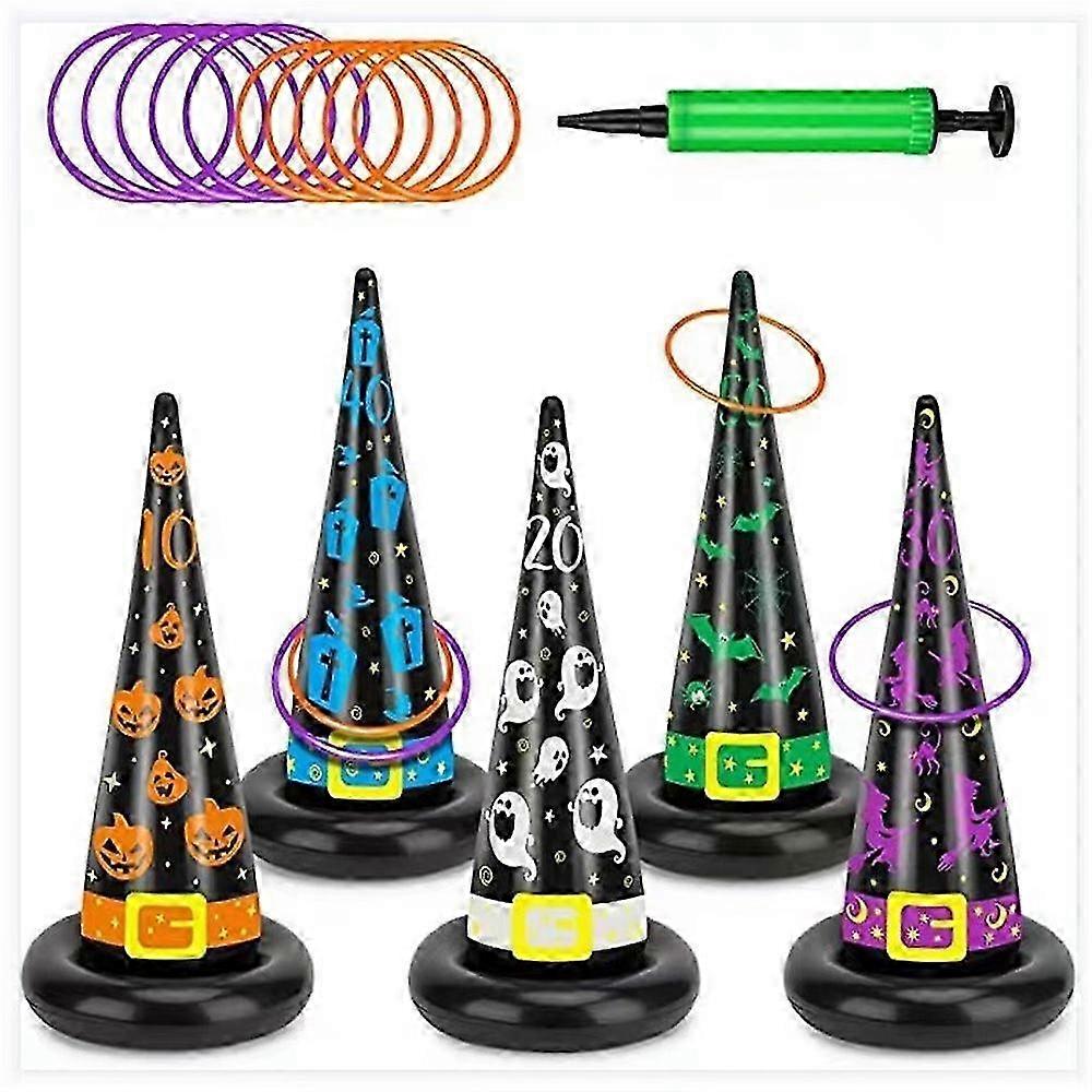 25-26 5Pcs Halloween Toys Games Inflatable Witch Hat Ring Toss Game with 10 Rings and Pump Halloween Decorations Gifts for Kids Adults Family Party Ga
