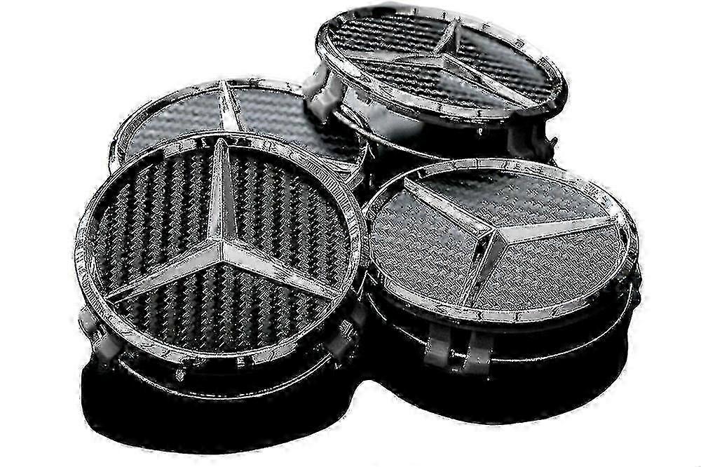 25-26 Mercedes Black Carbon Center Hub Alloy Wheel Caps 75mm Set Of 4 Pcs
