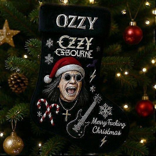 25-26 Ozzy Osbourne Christmas Stocking Kids Socks Gift Bag Tree Fireplace Decor Hanging 37*23cm Red Green Black