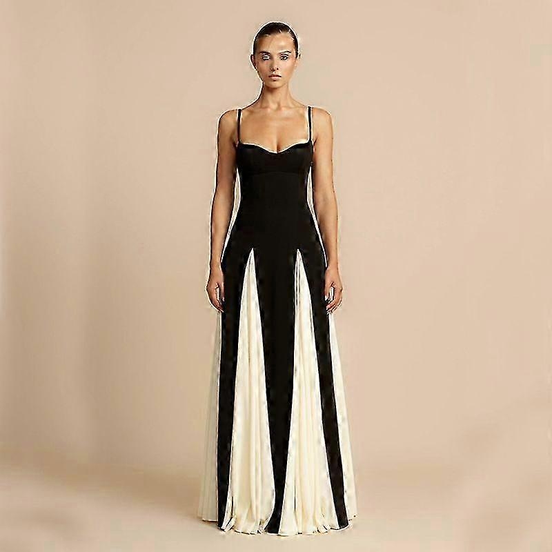 25-26 2025 Summer Women's New Elegant Sexy Backless Spaghetti Strap Slim Contrast Color Dress Women