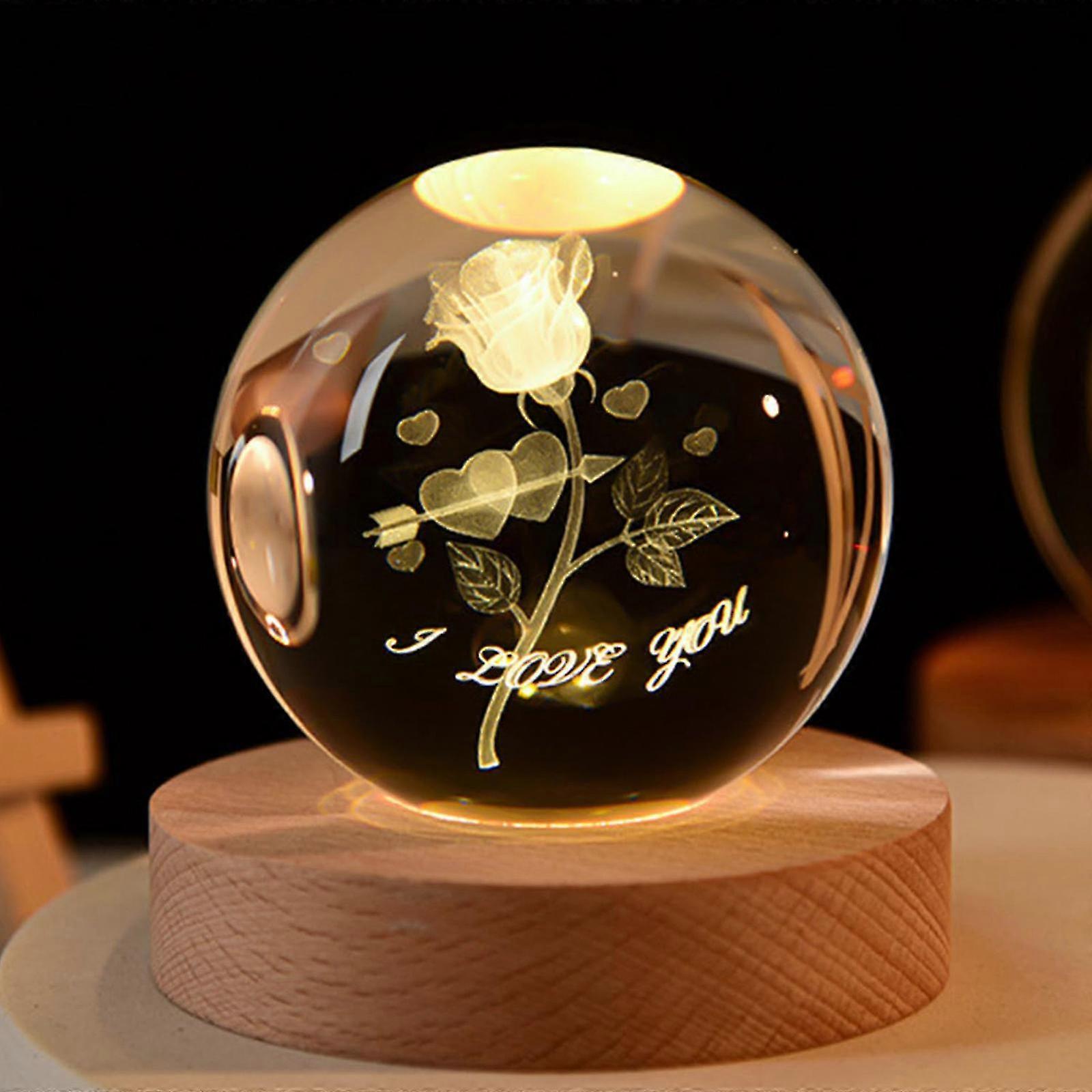 Beautiful Rose Crystal Ball with Warm LED Light 26s
