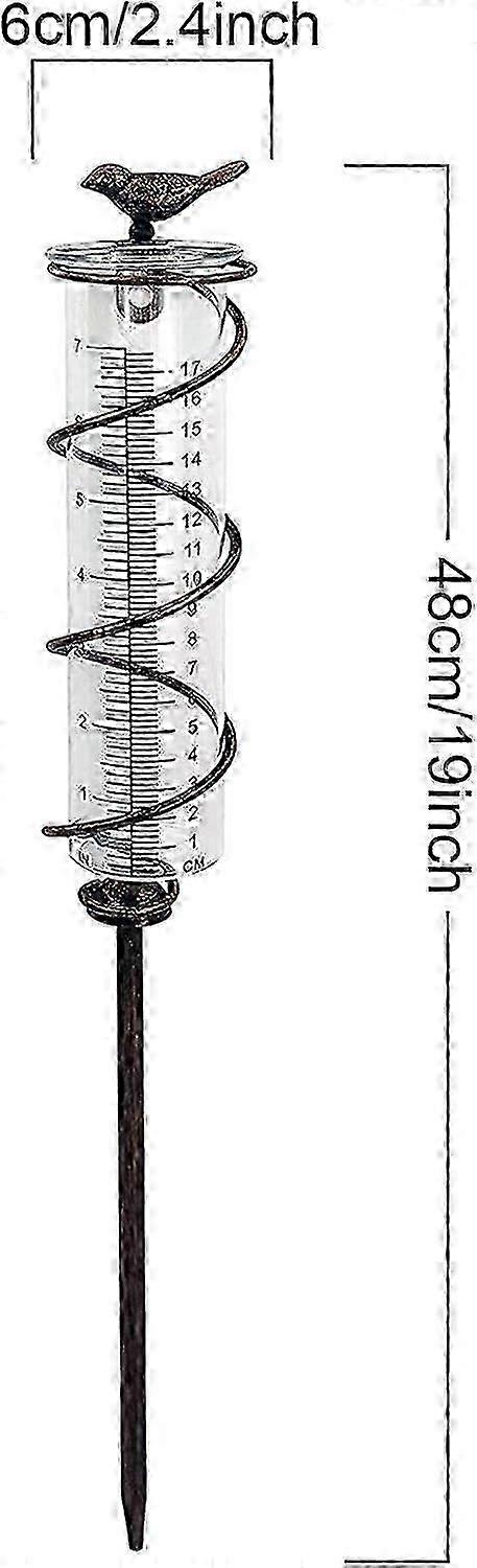 25-26 Spiral Glass Tube Rain Gauge with Bird Figurine - Waterproof Outdoor Garden Decoration & Weather Measurement Tool