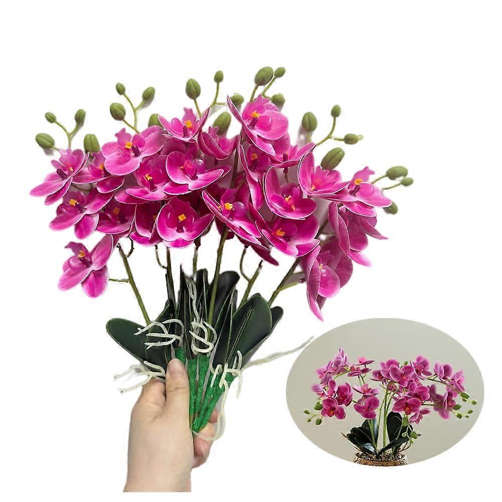 6 Branch Artificial Orchid Stems with Leaves, 15” Real Touch Rose Pink Phalaenopsis Fake Plants for Wreaths, Wedding Centerpieces, Floral