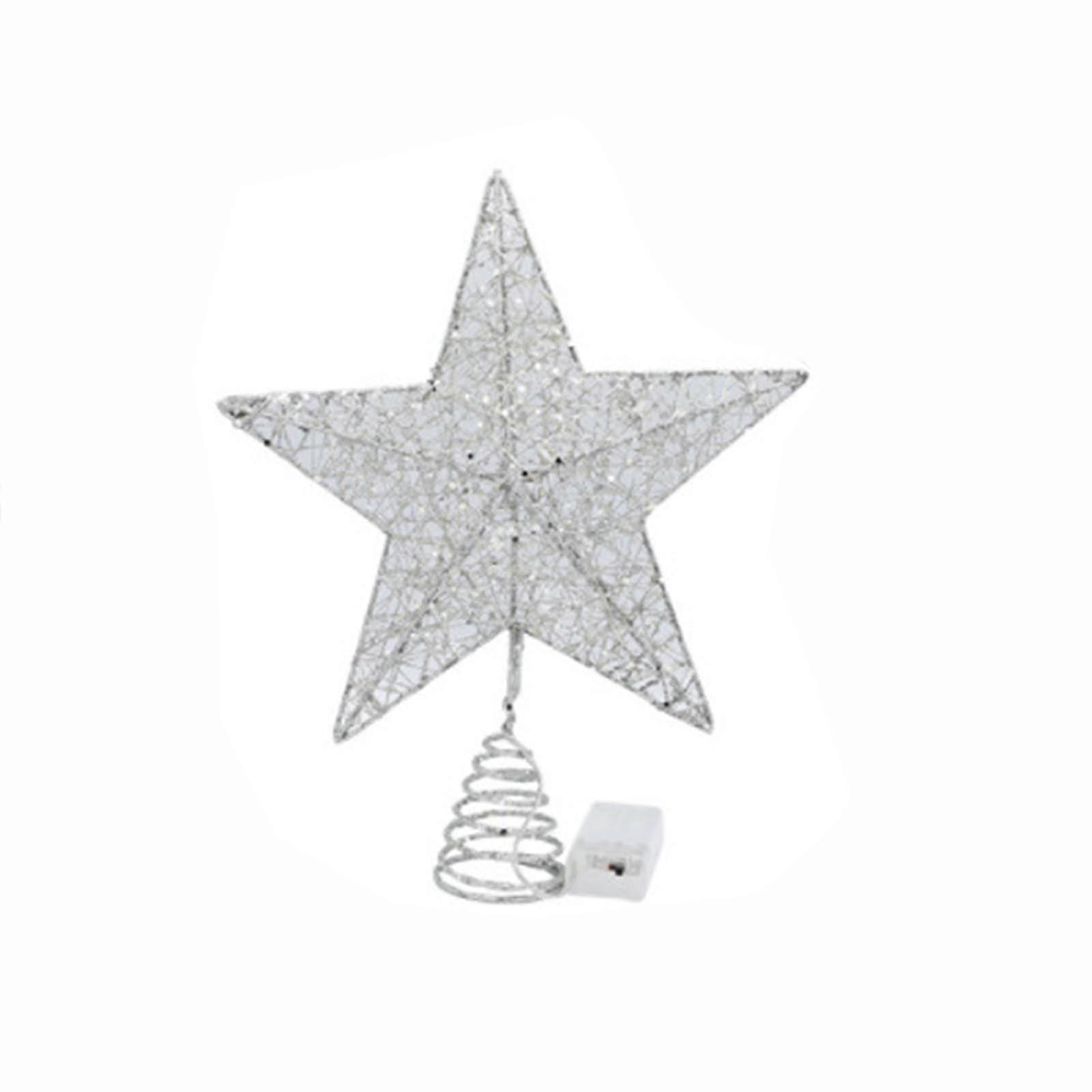 PAVEOS Garden Lights, LED Copper Wire Star Lights Compatible with Christmas Tree Decorations, Wrought Iron Glitter Top Star with String Lights,
