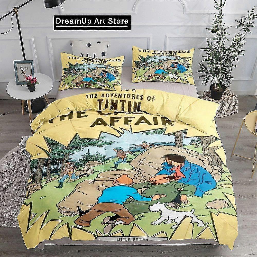 25-26 a3631 Draps de lit Mode T-Tintin Adventure Tales Ensemble de housse de couette pour enfants Parure de lit double Parure de lit 3 pièces (1 houss