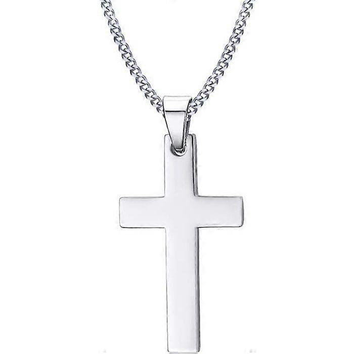 Stainless Steel Religious Cross Pendant Necklace for Men and Women - Silver