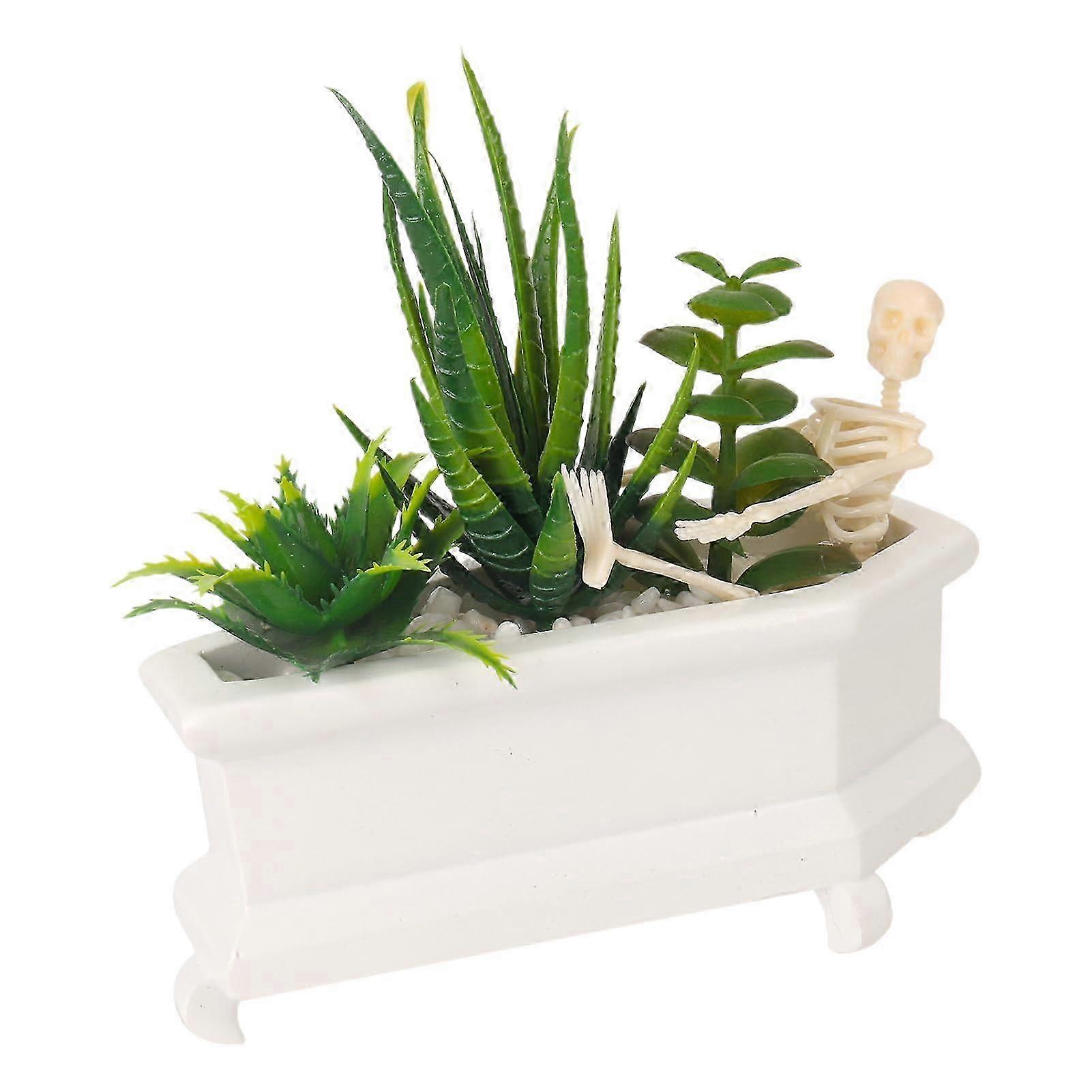 25-26 Faux Skull Coffin Plant Skeleton Desktop Prop For Home Table And Bedroom Flower Pot White Box Model A