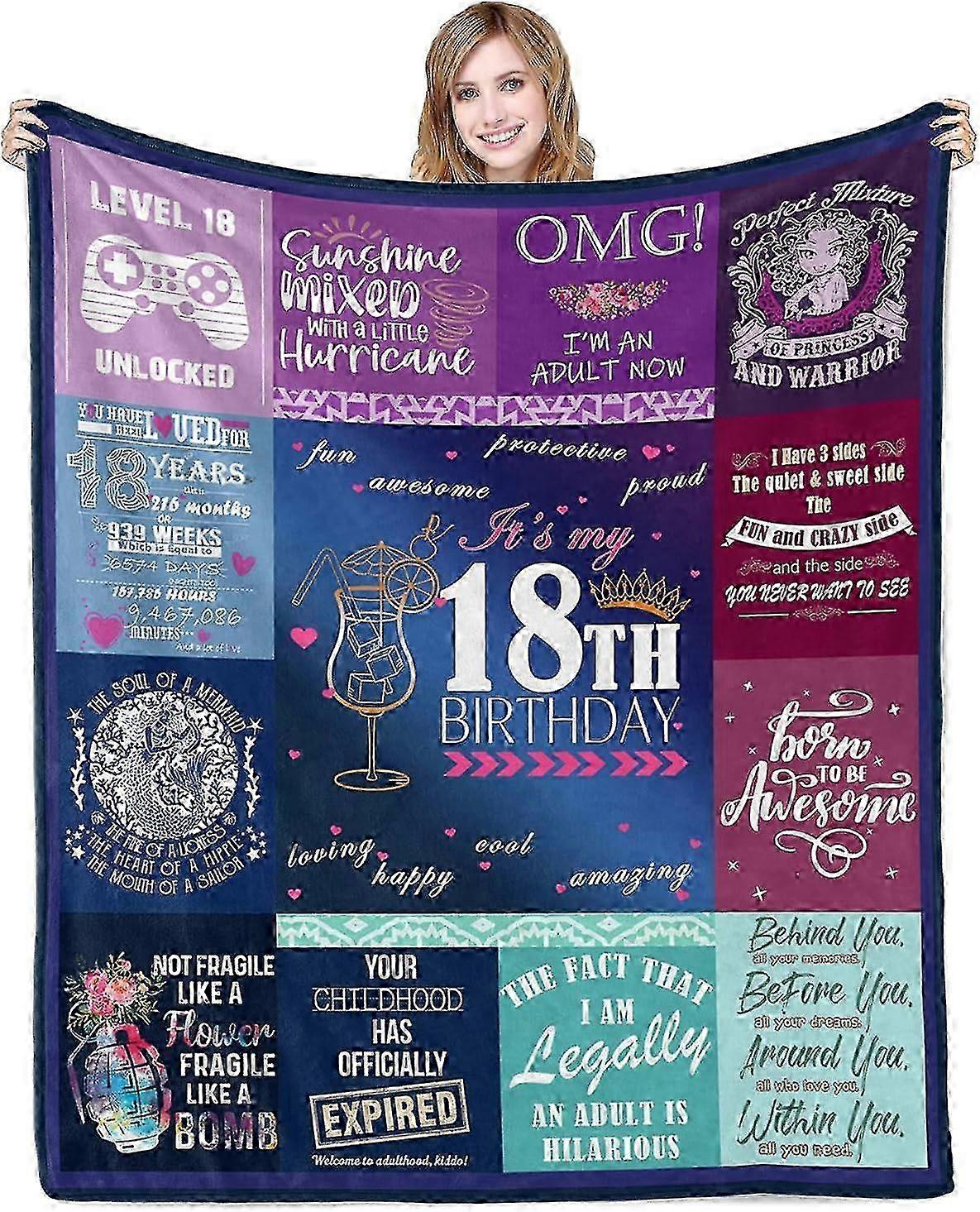 18th Birthday Decorations for Girls Gifts for 18 Year Old Girls Blanket 18 Year Old Birthday Gifts for Girls Teenage 18th Birthday Gift for Girl Soft Warm Flannel Throw Blankets 60x50in