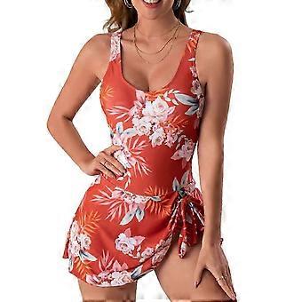 Women's Side Knot Print Swimsuits with Tummy Control Swim Dresses Skirted Style in Rose Red & XXL Size