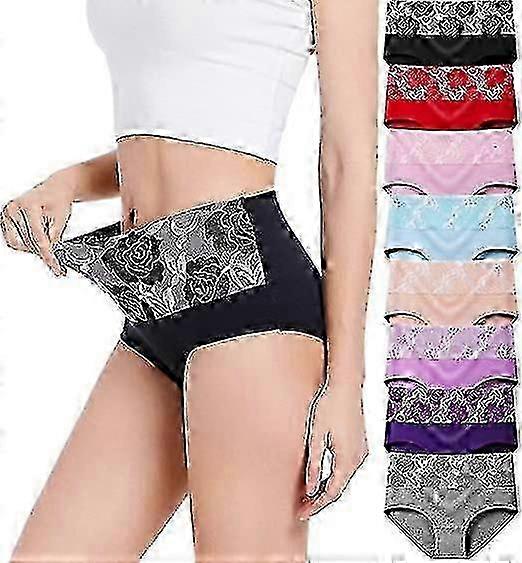 8 Pcs Women's Cotton High-Waist Tummy Control Underwear with Rose Jacquard Pattern