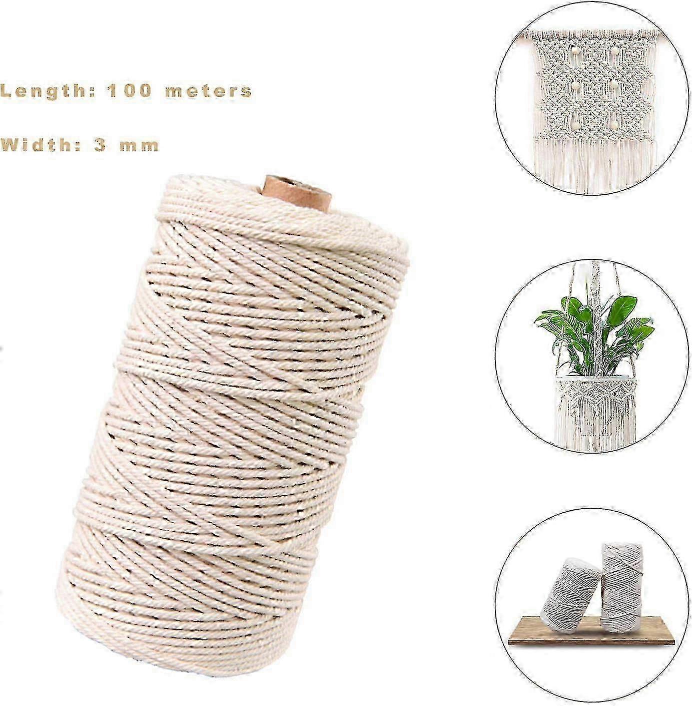 Natural Cotton Yarn Rope, Craft Macrame Yarn, White DIY Cord (100M-3mm) for Various Projects