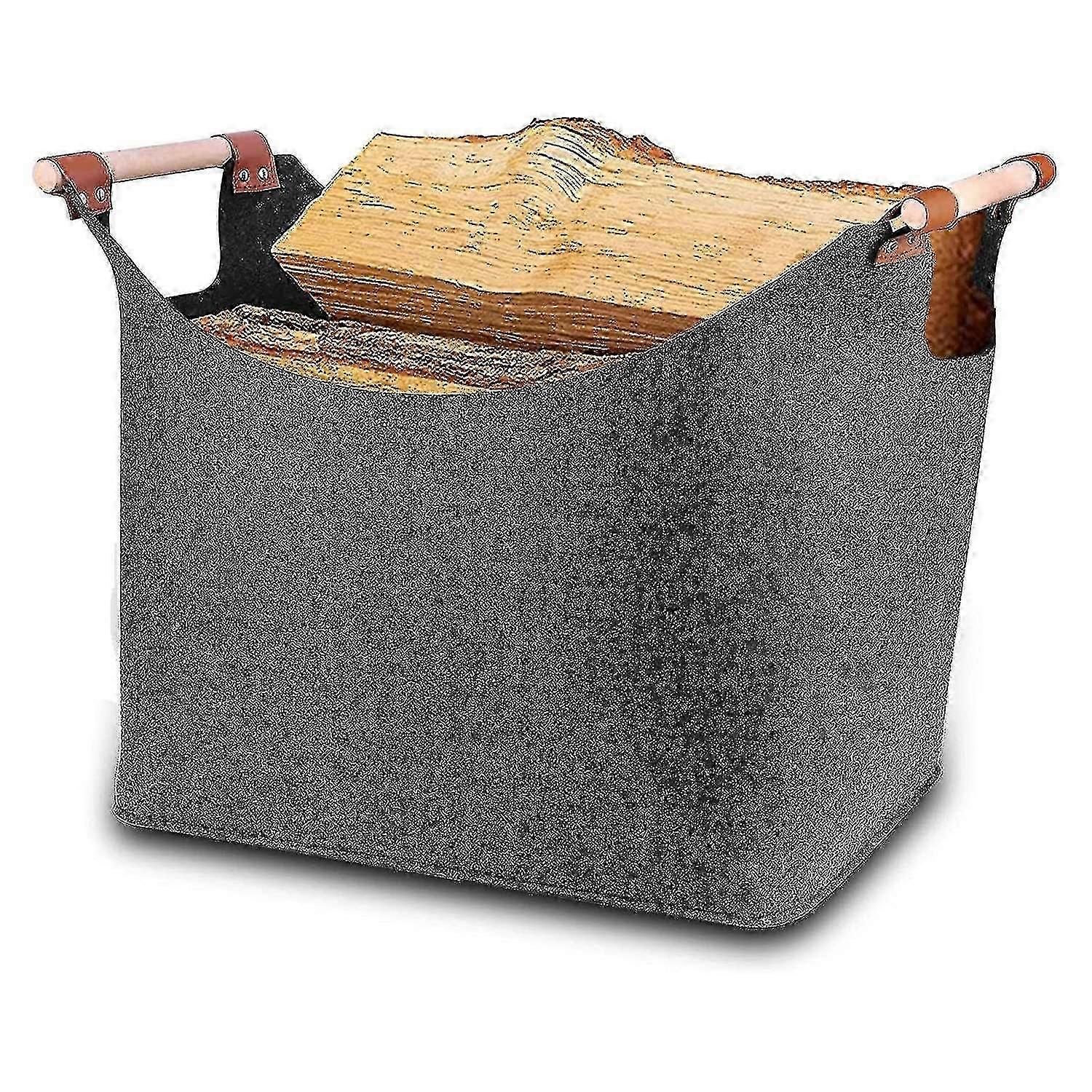 Felt Firewood Basket with Thickened Reinforced Handles and Foldable Wooden Structure
