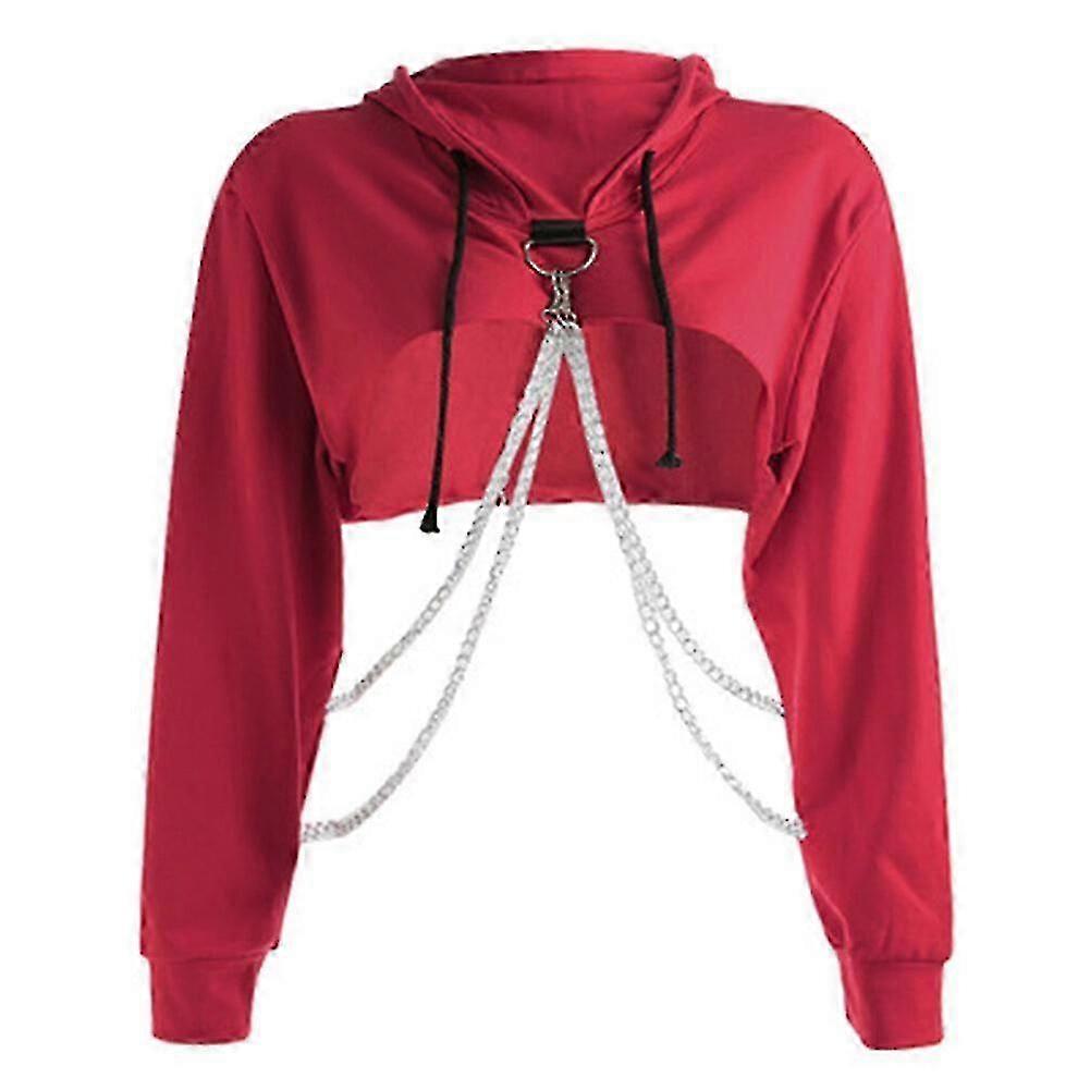Sexy Women's Cut-Off Front Hooded Sweatshirt with Crop Top Jumper Pullover - Black, Available in Sizes S to L