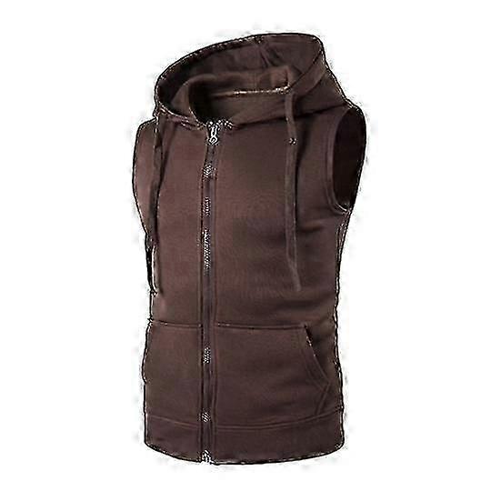 Men's Summer Hooded Drawstring Sleeveless Jacket with Zip Placket, Solid Color Pockets - Vest Coat for Casual Wear