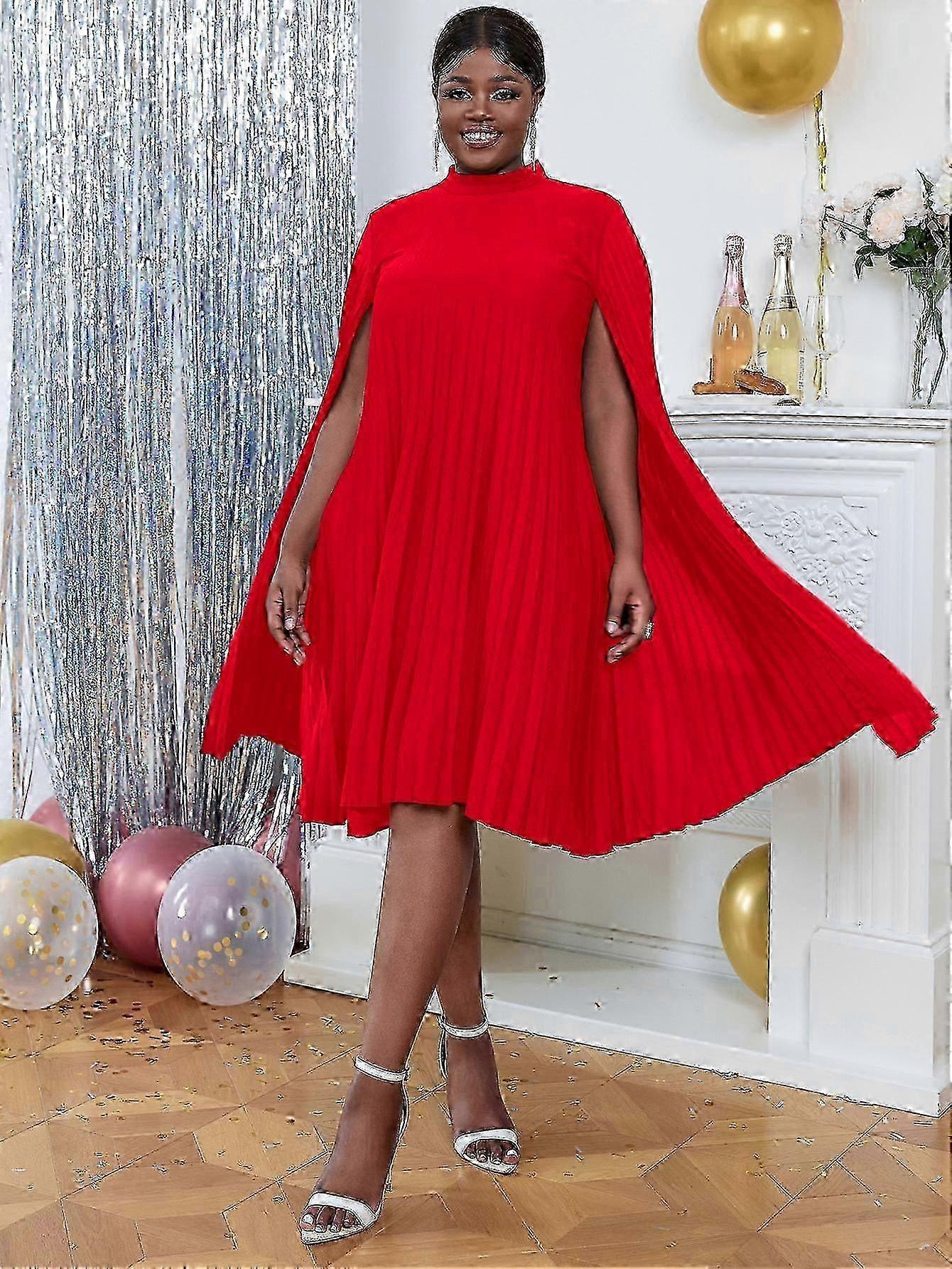 Women's AOMEI Party Dress: Stand Collar, Pleated Cape Sleeve, Loose Midi, Elegant for Evening, Wedding & Birthday Events, Red Outfit