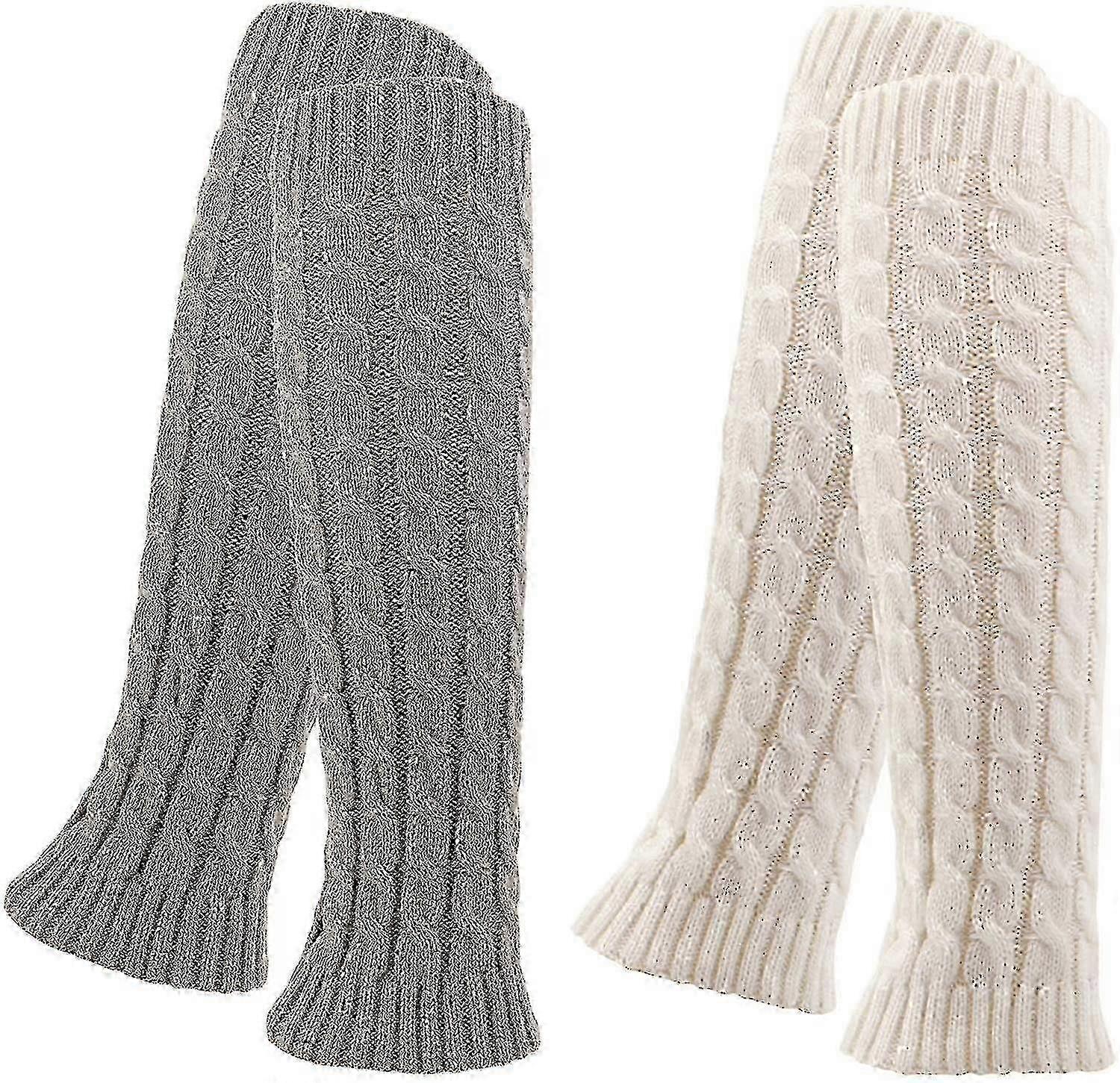 Women's 2-Pair Leggings with Leg Warmers: White & Grey Apparel Sets
