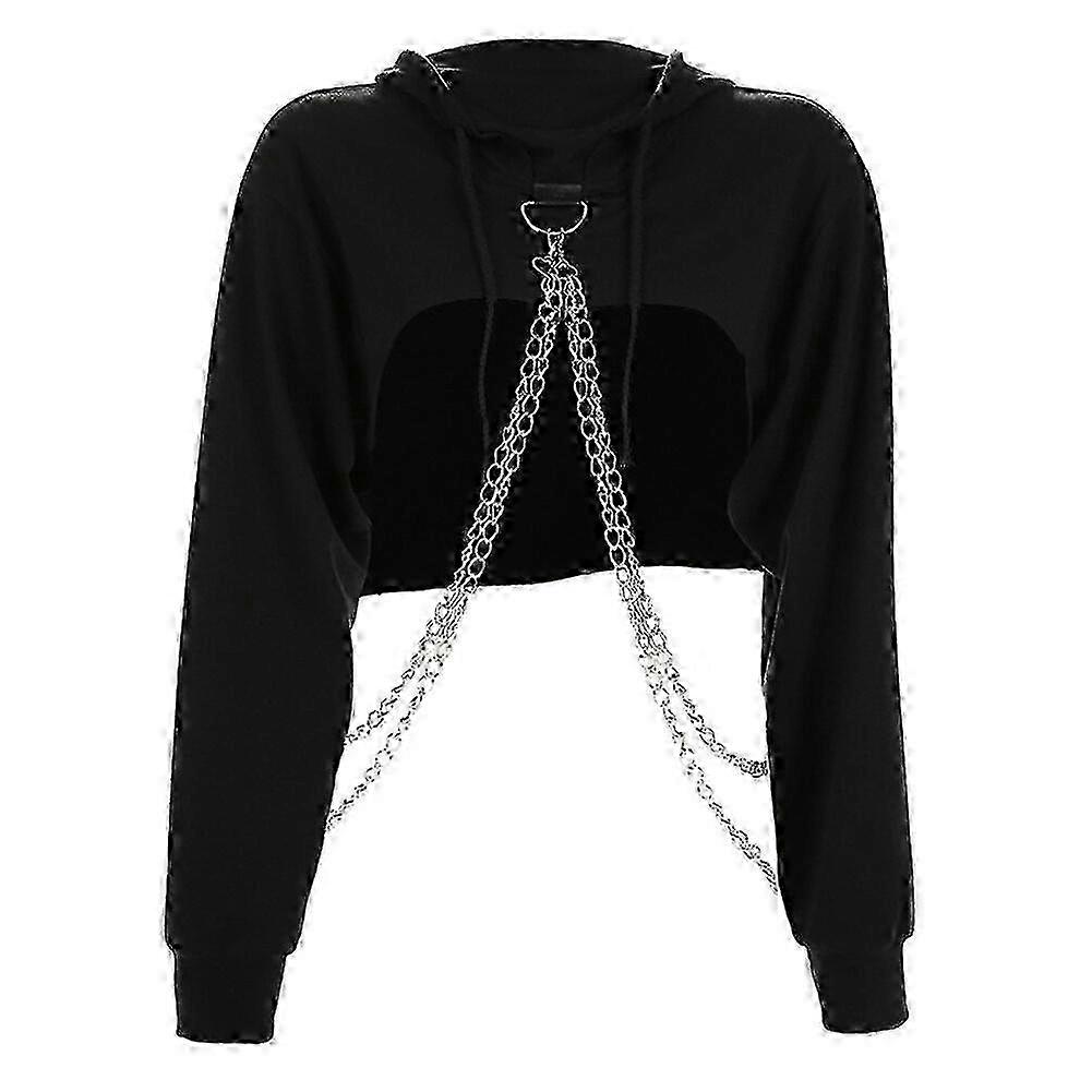 Sexy Women's Cut-Off Front Hoodie with Crop Top Jumper Pullover - Black in Sizes S to L - New Arrival Fashion