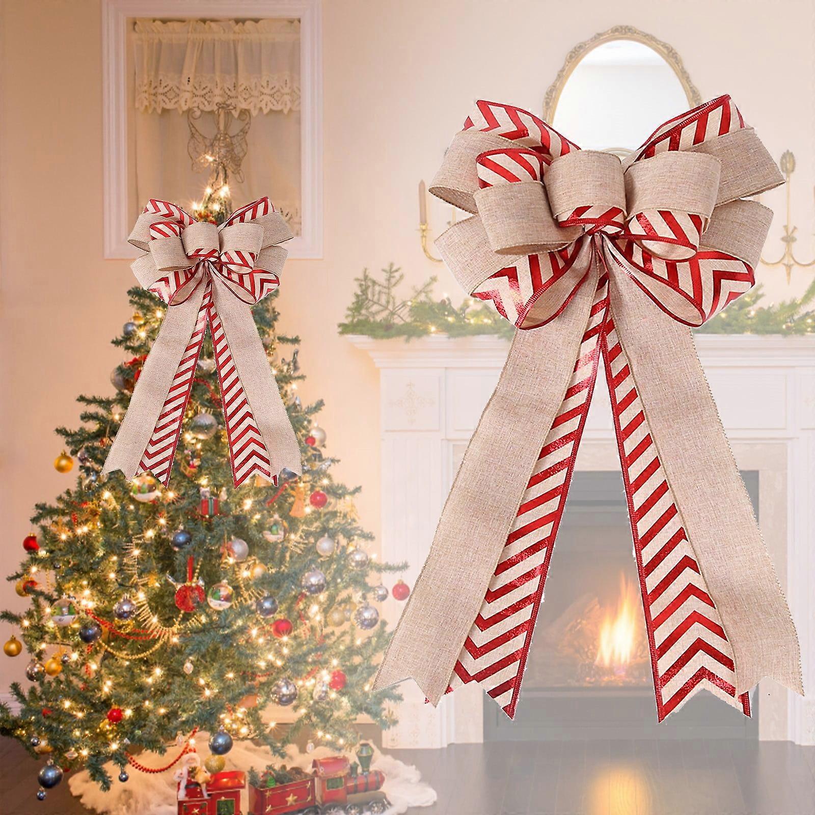 Begine Party Decorations Clearance,Large Christmas Bow C Double-Layer Linen Patchwork Striped Bow,1 Pendant